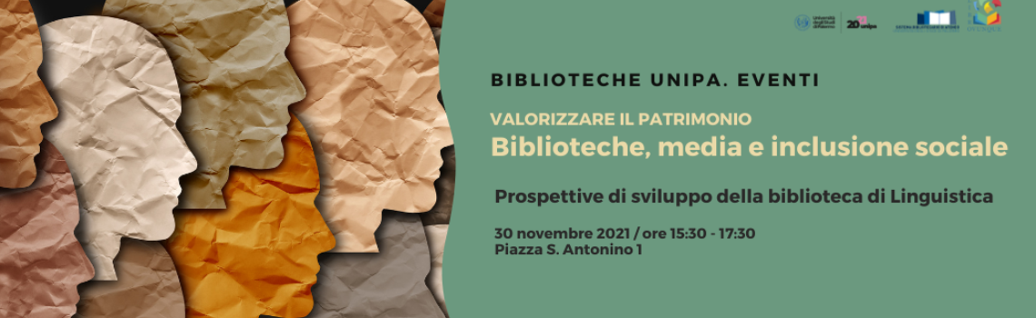 Il Sistema Bibliotecario di Ateneo dell'Università degli Studi di Palermo, al fine di valorizzare spazi, raccolte e servizi, promuove l’incontro Biblioteche, media e inclusione sociale. Prospettive di sviluppo della biblioteca di Linguistica.