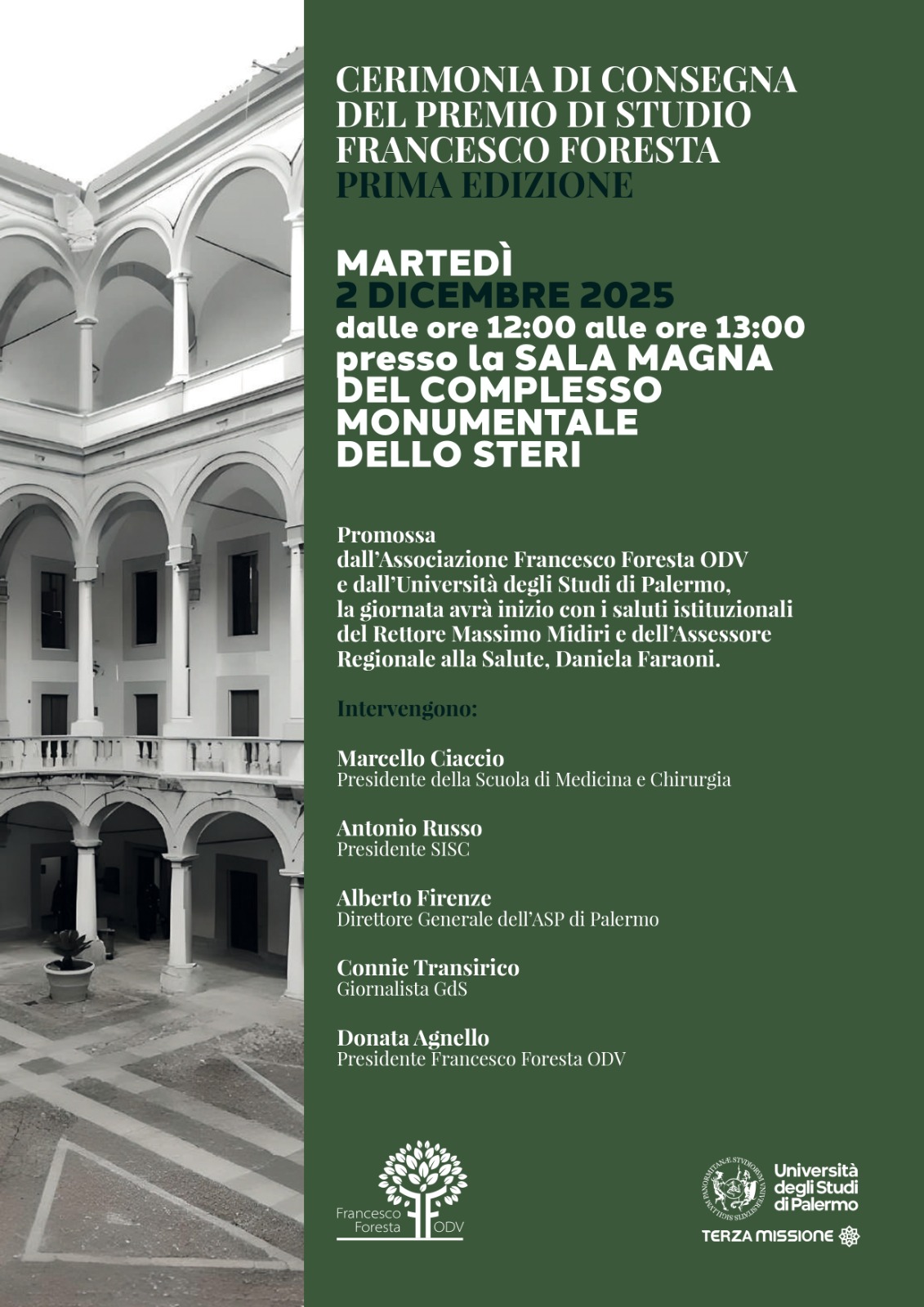 L’iniziativa è promossa dall’Associazione Francesco Foresta ODV in collaborazione con l’Università degli Studi di Palermo.