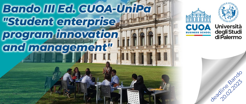 Pubblicato il Bando per la III Edizione del programma CUOA riservato agli studenti UNIPA "Student enterprise program innovation and management".