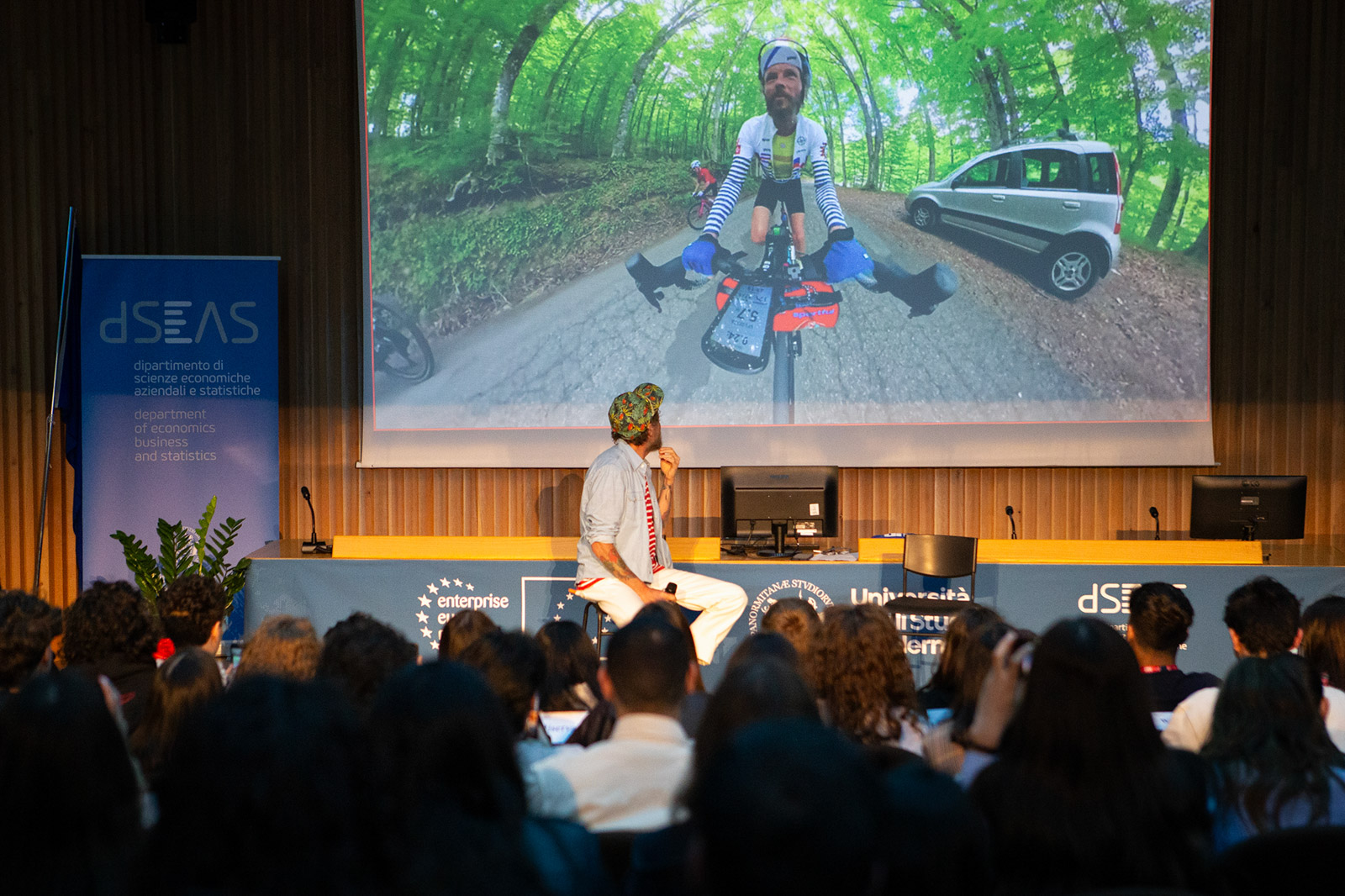 E mentre fuori il vento di scirocco si placava, dentro l’aula l’energia cresceva e si concentrava, fino a mescolarsi alla città e al suo respiro. Non semplice ascolto, ma partecipazione. Jovanotti ha dialogato con gli studenti e si è entusiasmato per i loro percorsi di studio: neuroscienze, ingegneria, medicina, discipline scientifiche e umanistiche si sono intrecciati in un’unica domanda di futuro. L’artista li ha ascoltati, si è fermato, ha sorriso e li ha incitati: “Siete fantastici e vivete un’epoca senza certezze ma piena di opportunità”.