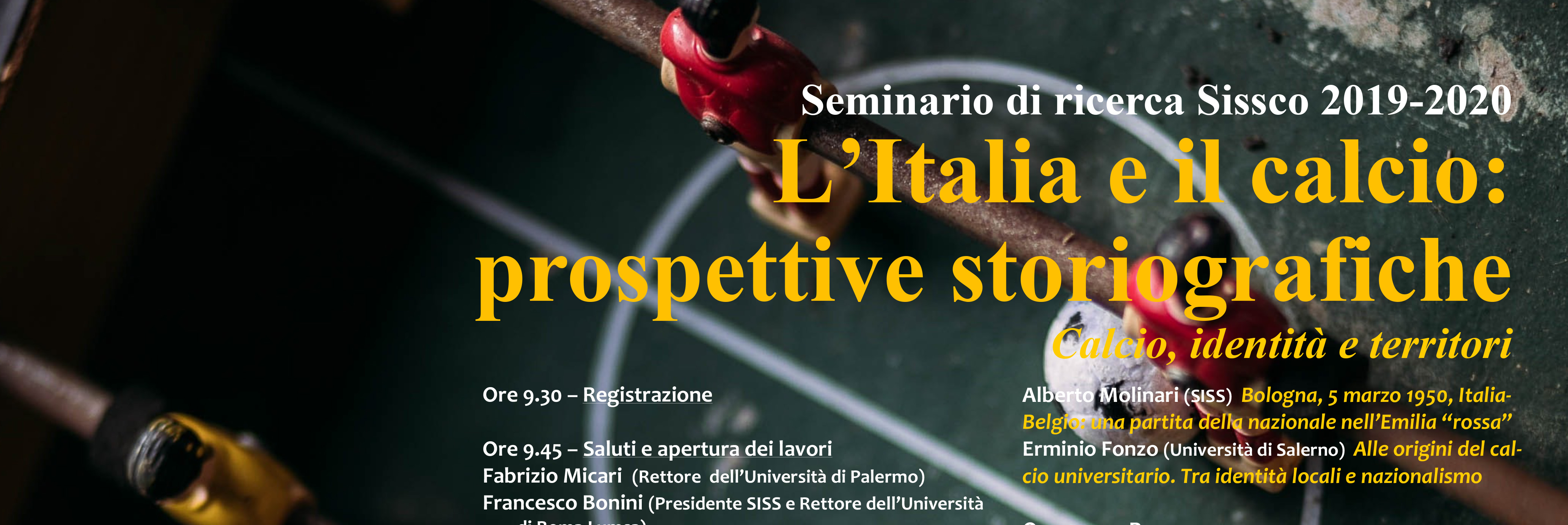 Negli ultimi la ricerca storiografica ha riservato interesse e attenzione crescenti allo studio delle pratiche sportive e al loro ruolo all’interno della società. Il ciclo di seminari dal titolo “L’Italia e il calcio: prospettive storiografiche” promosso dalla Società Italiana per lo Studio della Storia Contemporanea in collaborazione con la Società Italiana di Storia dello Sport e con alcuni atenei italiani si inserisce proprio in questo solco.