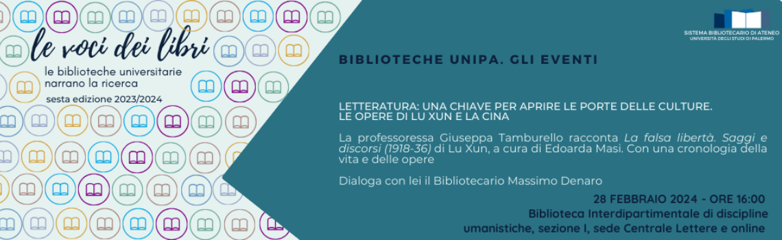 Il quarto incontro, dal titolo Letteratura: una chiave per aprire le porte delle culture. Le opere di Lu Xun e la Cina, si svolgerà giorno 28 febbraio 2024, alle ore 16:00, presso la Biblioteca Interdipartimentale di discipline umanistiche, sezione I, sede Centrale Lettere e online su Teams.