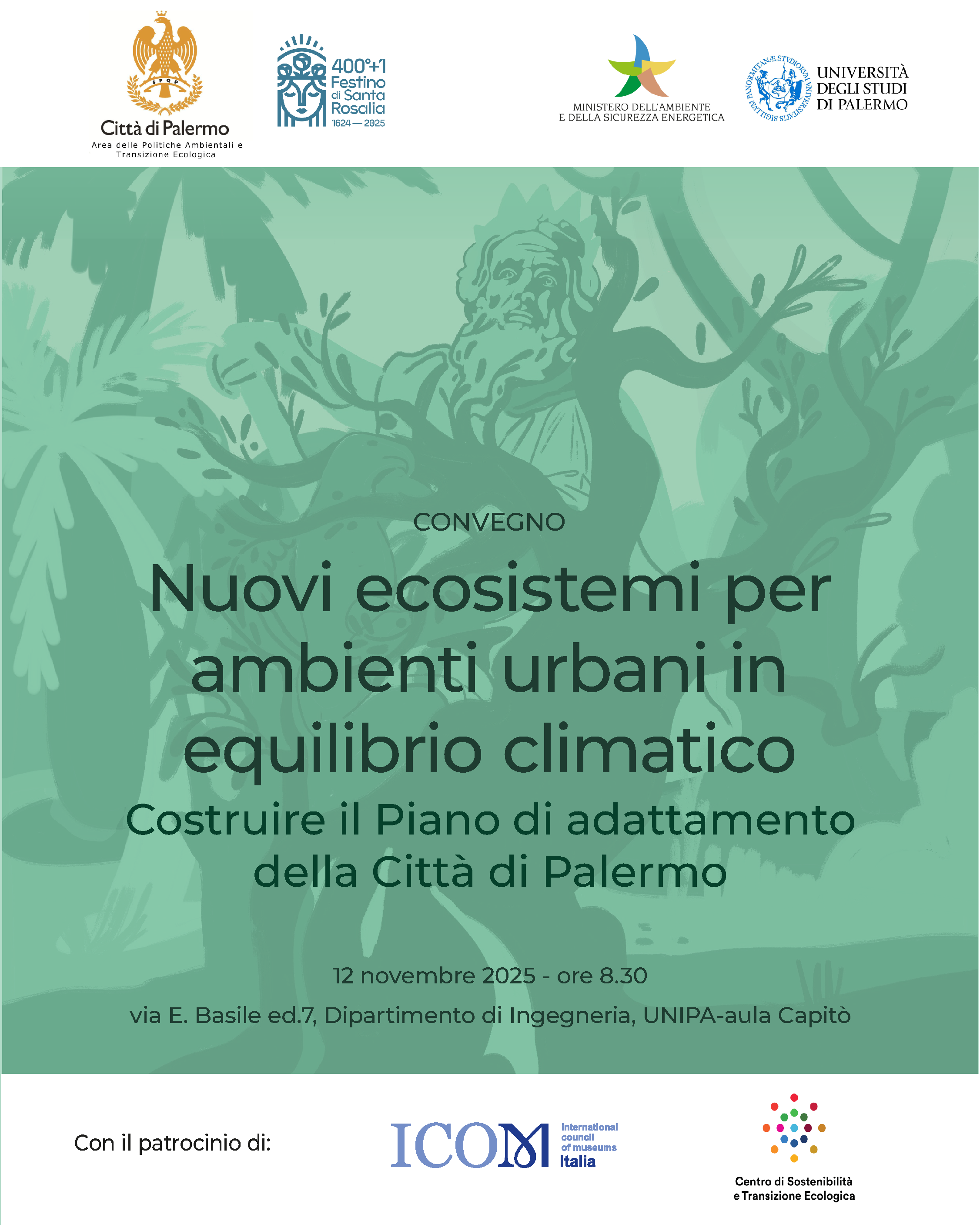 Mercoledì 12 novembre, dalle 8.30, nell'Aula Capitò - Edificio 7 (Campus di Viale delle Scienze) si tiene il convegno "Nuovi ecosistemi per ambienti urbani in equilibrio climatico", un momento di confronto e riflessione dedicato alle strategie di adattamento al cambiamento climatico e alla costruzione di città più sostenibili e resilienti.