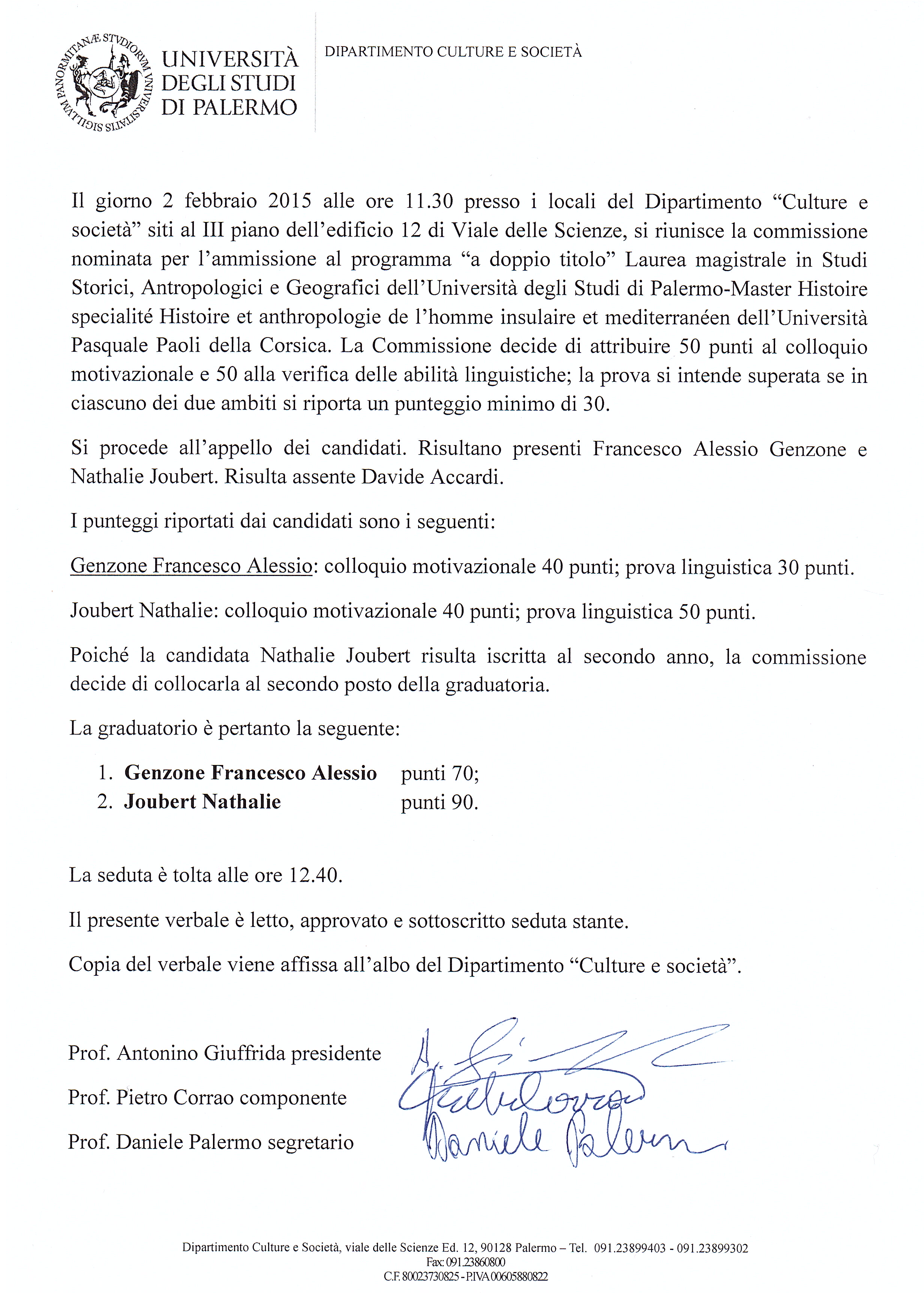 Università della Corsica Pasquale Paoli 3-feb-2015 Ascolta FRANCE CALL for double title Parole Chiave: Double, Degress, France