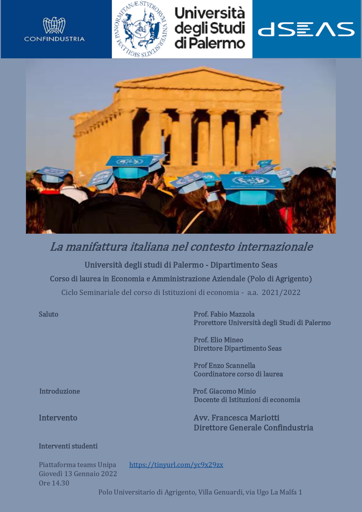 Si comunica che, con Decreto Rettorale dell'11 novembre u.s., è stato nominato Presidente del Polo territoriale universitario di Agrigento il prof. Giovanni Francesco Tuzzolino.Prenotazione lezioni in presenza - Secondo modulo del Primo semestre A.A. 2021/2022