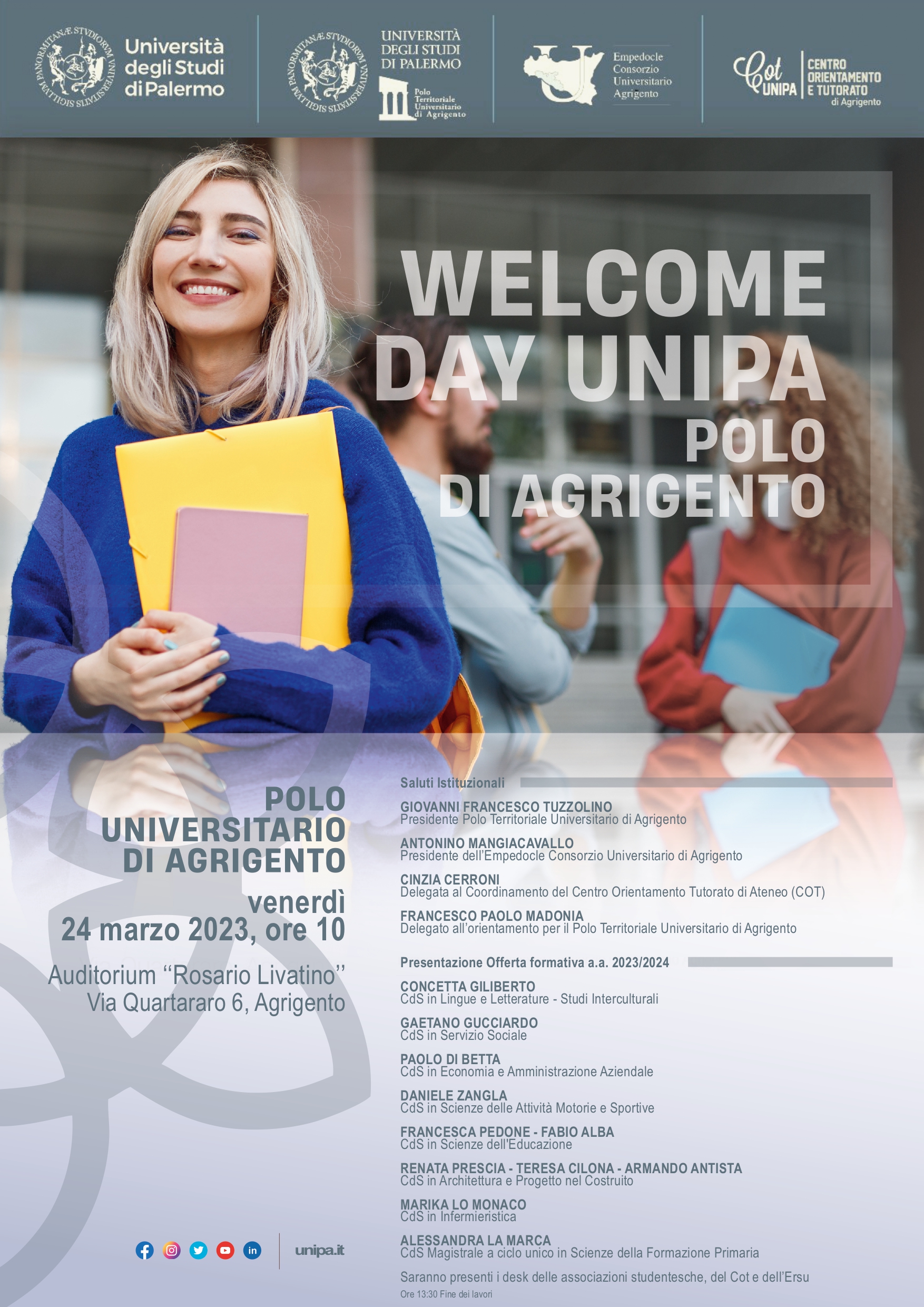 Nell’ambito delle iniziative di orientamento previste dal Progetto POT del Dipartimento di Scienze Psicologiche, Pedagogiche, dell’Esercizio Fisico e della Formazione, è stato attivato un servizio di peer tutoring online rivolto esclusivamente agli studenti che intendono immatricolarsi ai CdS ...Conferenza Stampa - Presentazione nuova offerta formativa attivata presso il Polo territoriale universitario di Agrigento.