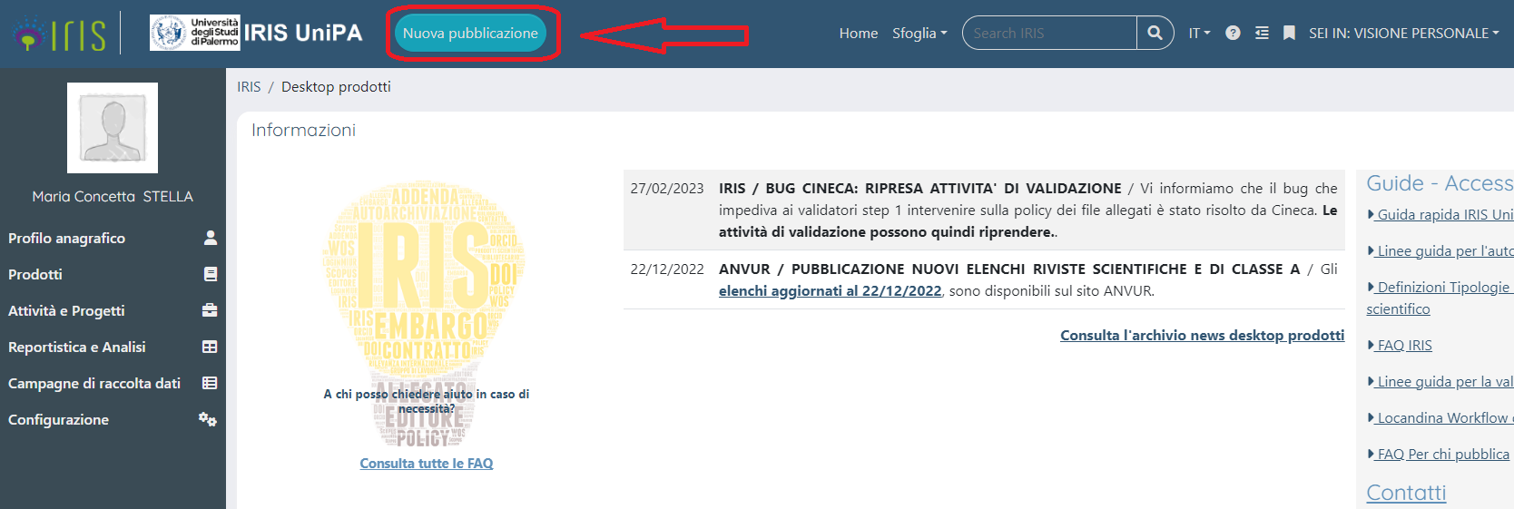 It should be remembered that your scientific production can be imported from your LoginMiur personal page to the Iris products desktop by writing to iris@unipa.it.