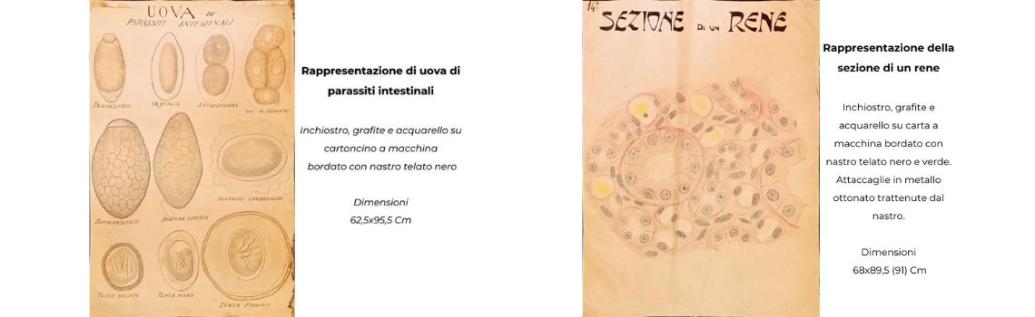 Esposizione di dodici tavole parietali, risalenti agli anni 1920 - 1940, di dimensioni 90x60, disegnate e colorate a mano, raffiguranti schemi di fisiopatologia, strutture anatomiche, alterazioni patologiche, cellule ematiche.