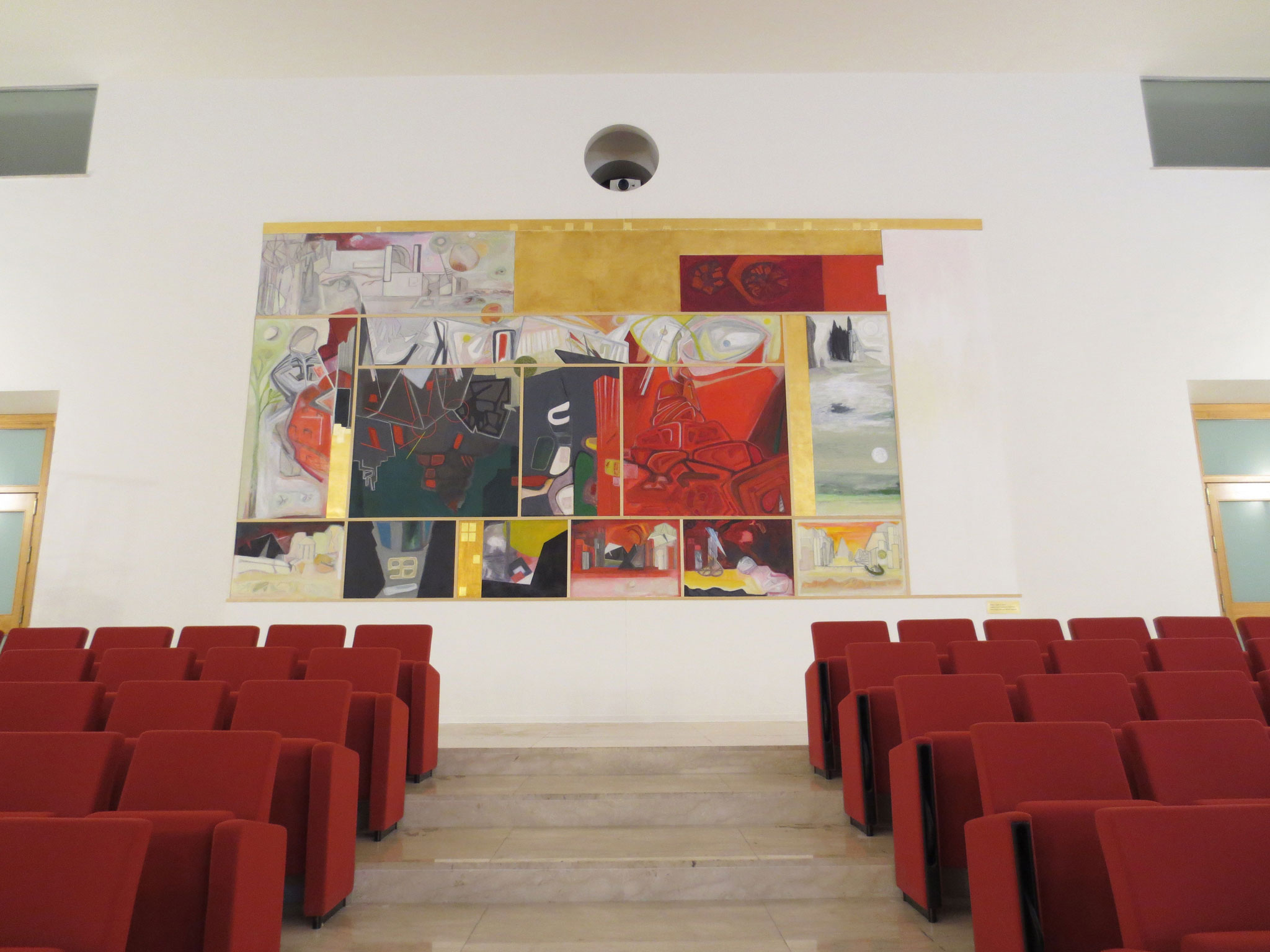 Il polittico, di sette metri per quattro circa, ispirato all'Amleto e dedicato allo scomparso Prof. Michele Argentino, si trova nell'Aula Magna del Dipartimento di Architettura presso l'Edificio 14.