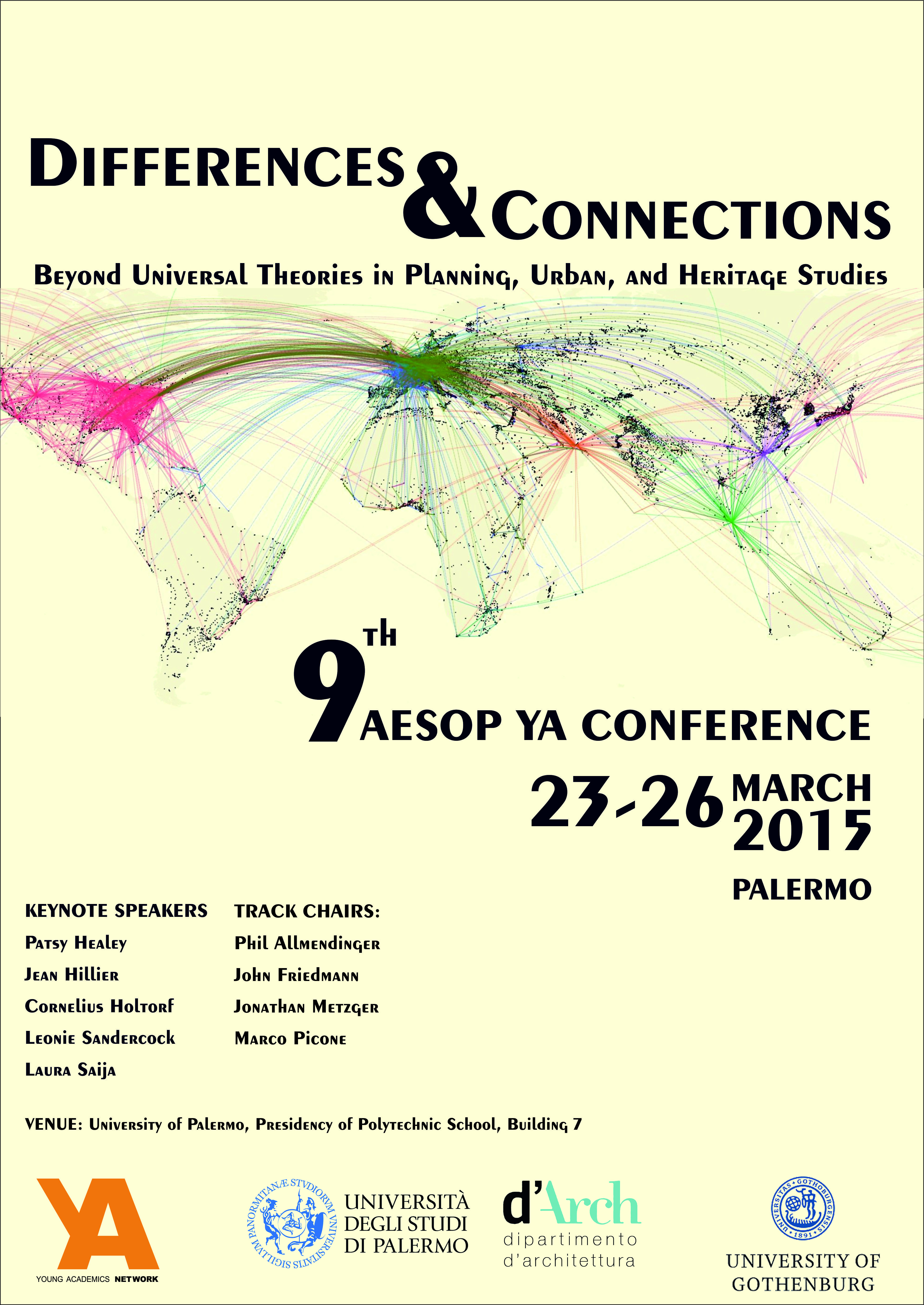 Nei giorni 23-26 marzo 2015 avrà luogo presso la Scuola Politecnica - Dipartimento di Architettura dell’Università degli Studi di Palermo la IX Young Academics Conference 2015 “Differences and Connections: Beyond Universal Theories in Planning, Urban, and Heritage Studies”, co-organizzata dal Dipartimento di Architettura dell’Università degli Studi di Palermo e dal Critical Heritage Studies dell’University of Gothenburg.