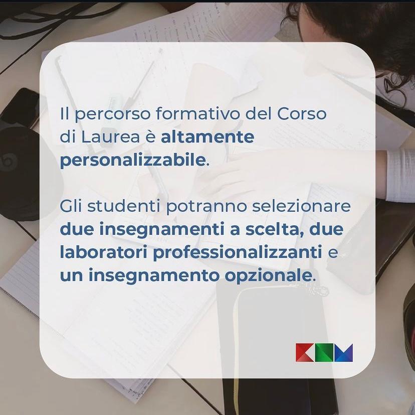 La personalizzabilità del piano di studi è data dalla presenza di ben tre insegnamenti fra opzionali e a scelta dello studente (per un totale di 18 crediti), grazie ai quali ogni studente potrà costruire il proprio percorso formativo sulla base dei propri interessi o di opportunità professionali.