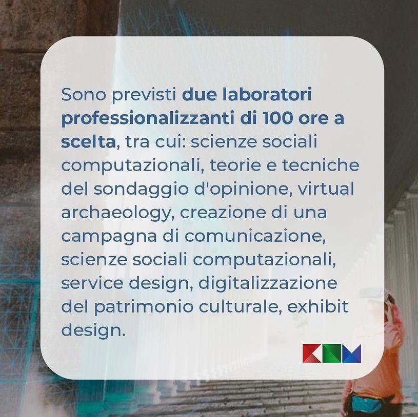 - Laboratori professionalizzanti che forniscono competenze tecniche legate ai più importanti ambiti della comunicazione contemporanea