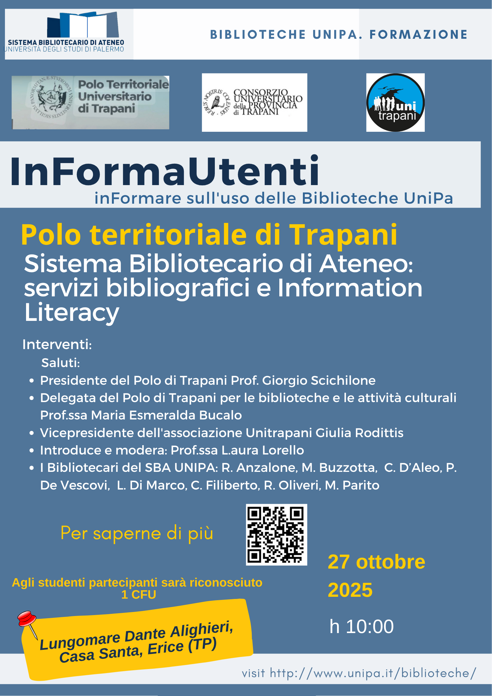 Polo Universitario di Trapani - Lungomare Dante Alighieri n.2/4 - 91016 Casa Santa Erice (TP) Centralino +39 091 23864401