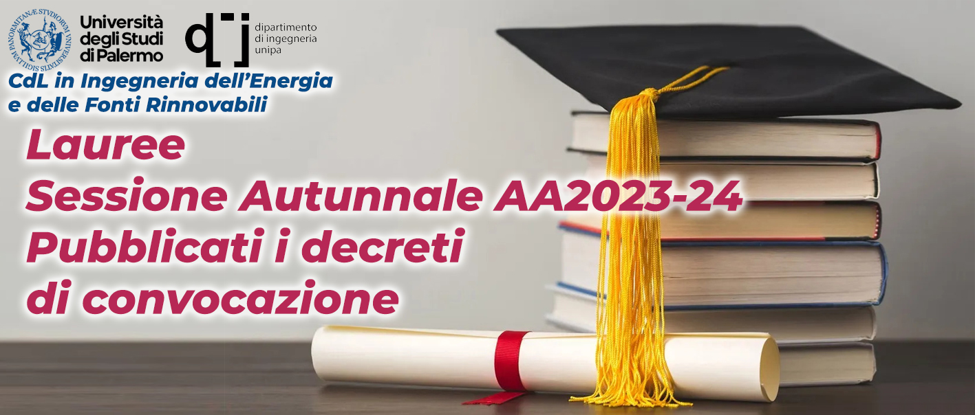 La Sessione Autunnale dell'AA 2023/2024 degli Esami di Laurea in Ingegneria dell’Energia (CdL IdE) e in Ingegneria dell'Energia e delle Fonti Rinnovabili (CdL IdEFR), in sintesi, si svolgerà:
