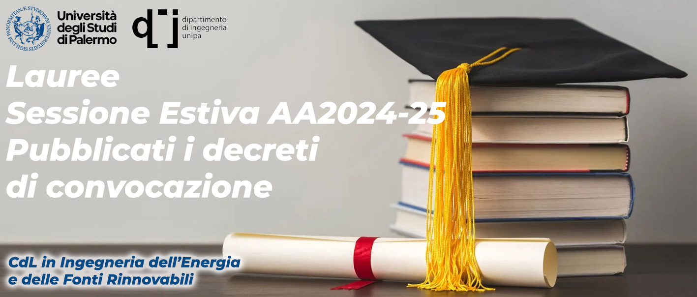 La Sessione Estiva dell'AA 2024/2025 degli Esami di Laurea in Ingegneria dell’Energia (CdL IdE) e in Ingegneria dell'Energia e delle Fonti Rinnovabili (CdL IdEFR), in sintesi, si svolgerà: