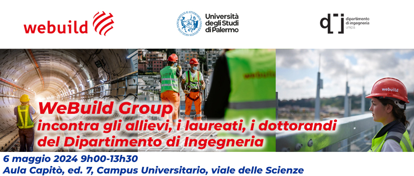 Il giorno 16 maggio 2024 dalle ore 9:00 alle ore 13:30, WeBuild Group incontra gli allievi, i laureati, i dottorandi del Dipartimento di Ingegneria - Aula Capitò - edificio 7 - Campus universitario, viale delle Scienze.
