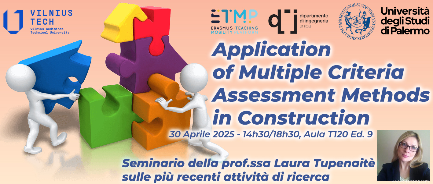 Nell’ambito delle attività della “ERASMUS + Teaching Mobility” il nostro Dipartimento ospita la prof.ssa Laura Tupenaitè, della Vilnius Gediminas Technical University, che terrà un seminario dal titolo: