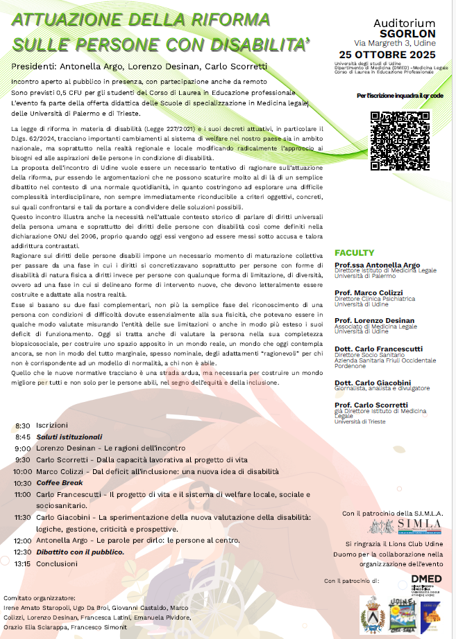 L’evento fa parte della offerta didattica delle Scuole di specializzazione in Medicina legale delle Università di Palermo e di Trieste.