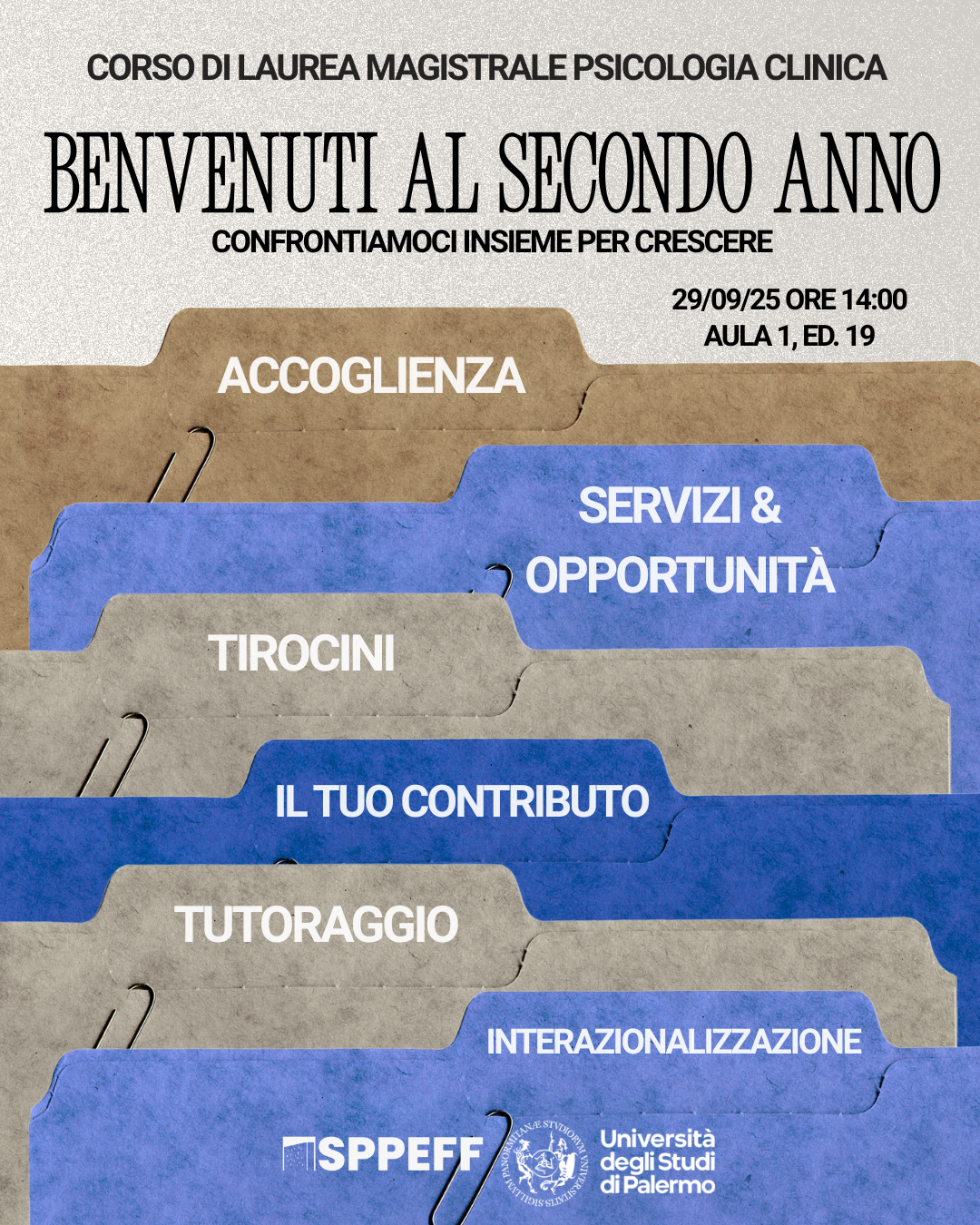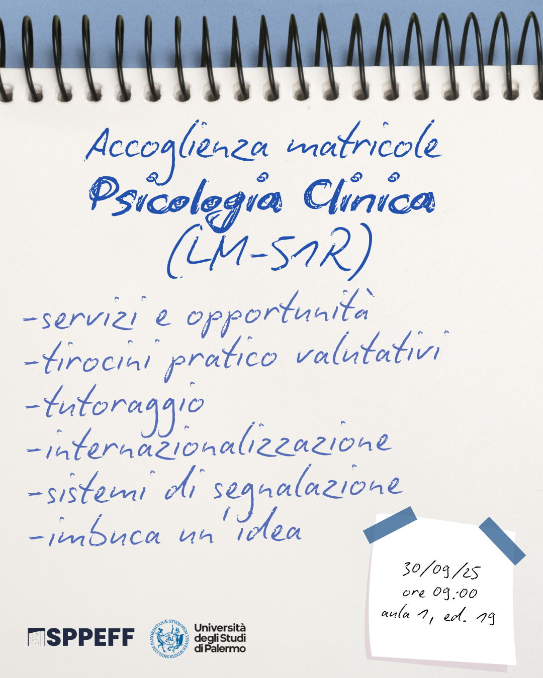 Si comunica che lunedì 29 (ore 14.00) e martedì 30 settembre (ore 9.00), la Coordinatrice del CdS, la delegata all'Orientamento, le commissioni AQ e CPDS incontreranno gli studenti per un benvenuto e per illustrare le opportunità di partecipazione attiva alla vita del CdS e le risorse di cui dispongono.