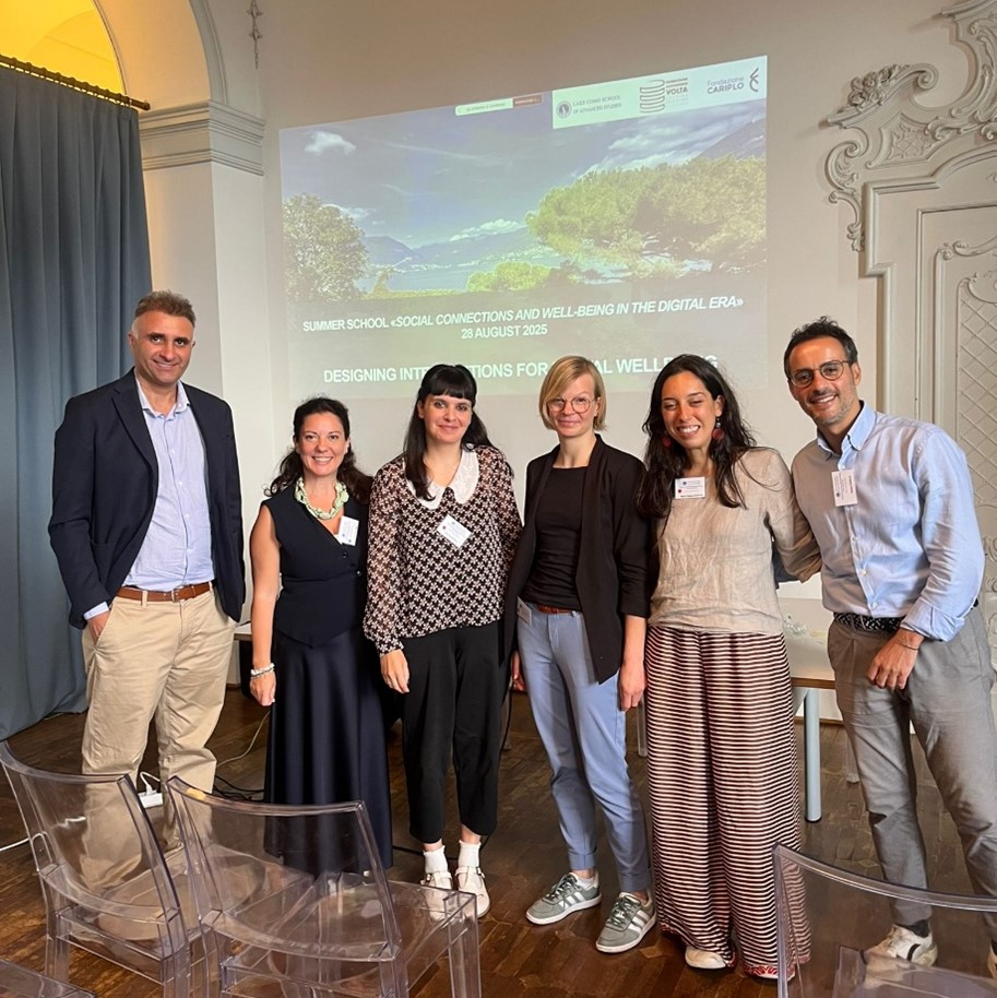 Dal 25 al 29 Agosto 2025, la prof.ssa Laura Salerno e la dott.ssa Maria Teresa Graffeo si sono recate a Como in occasione della Summer school "Social Connections and Well-being in the Digital era". Il comitato organizzativo ha visto la partecipazione della prof.ssa Laura Salerno in collaborazione con il prof. Paolo Riva (Università di Milano-Bicocca), il prof. Luca Andrighetto (Università di Genova), il prof. Natale Canale (Università di Padova) e il Prof. Luca Pancani (Università di Milano-Bicocca). La summer school ha avuto carattere internazionale grazie alla partecipazione di 23 studenti (dottorandi, PhD e ricercatori) provenienti da diversi paesi e 14 invited speakers provenienti da istituzioni universitarie nazionali e internazionali. Durante la summer school, la dott.ssa Graffeo ha presentato una relazione dal titolo: “Partner phubbing and psychological distress among adults in intimate relationships” all’interno della giornata sul tema “Designing interventions for digital well-being”.