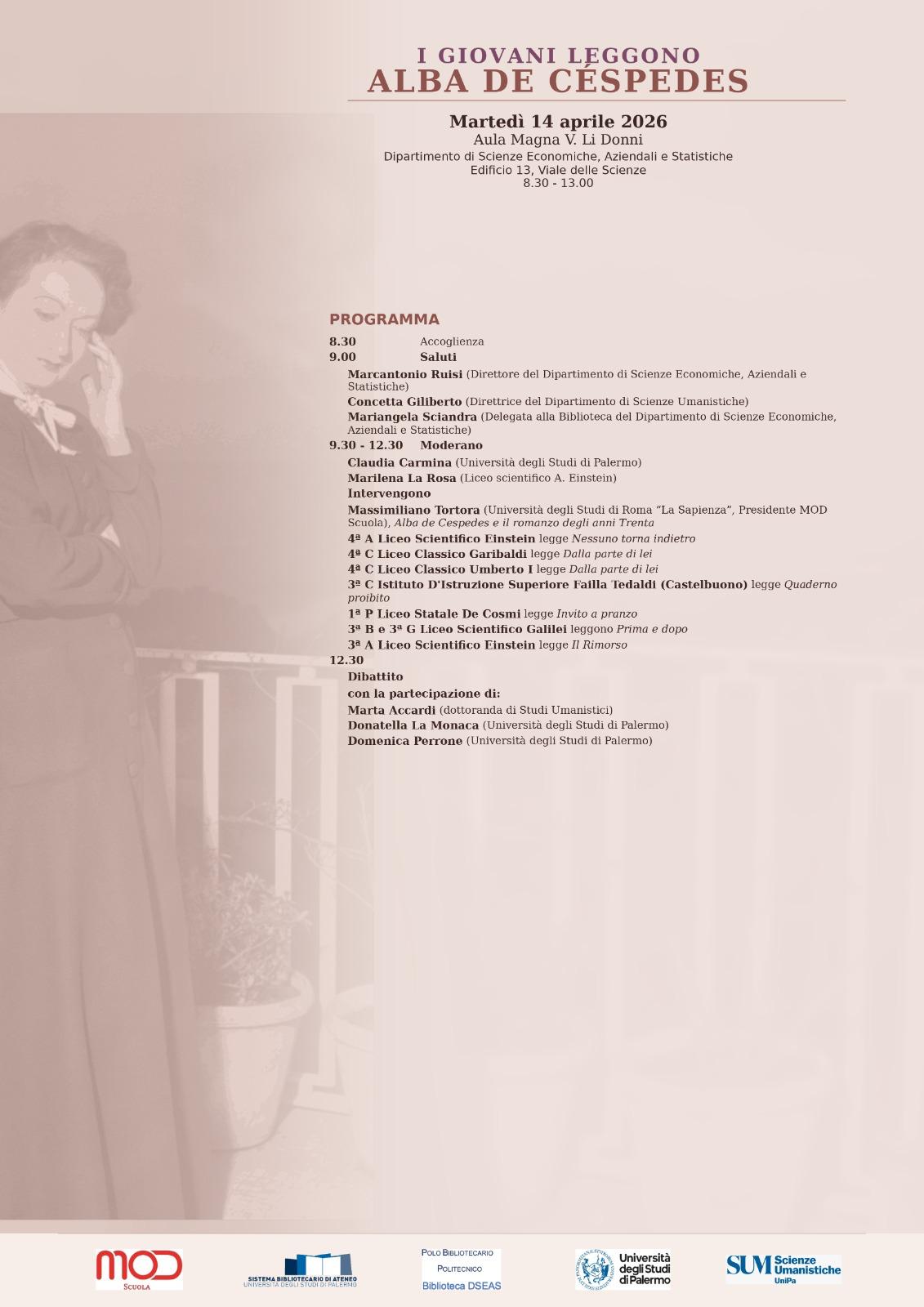 L’Università di Palermo (la cattedra di Letteratura italiana afferente al Dipartimento di Scienze Umanistiche presso la Scuola delle Scienze Umane e del Patrimonio Culturale) e l’USR della Sicilia hanno aderito con molto entusiasmo all’iniziativa, che si inserisce nel più ampio e articolato quadro di attività coordinate tra università e scuola finalizzate al rafforzamento di interessi e di competenze specifiche dello studio dei testi letterari, che contribuiscono in maniera preponderante alla formazione dell’uomo e del cittadino.