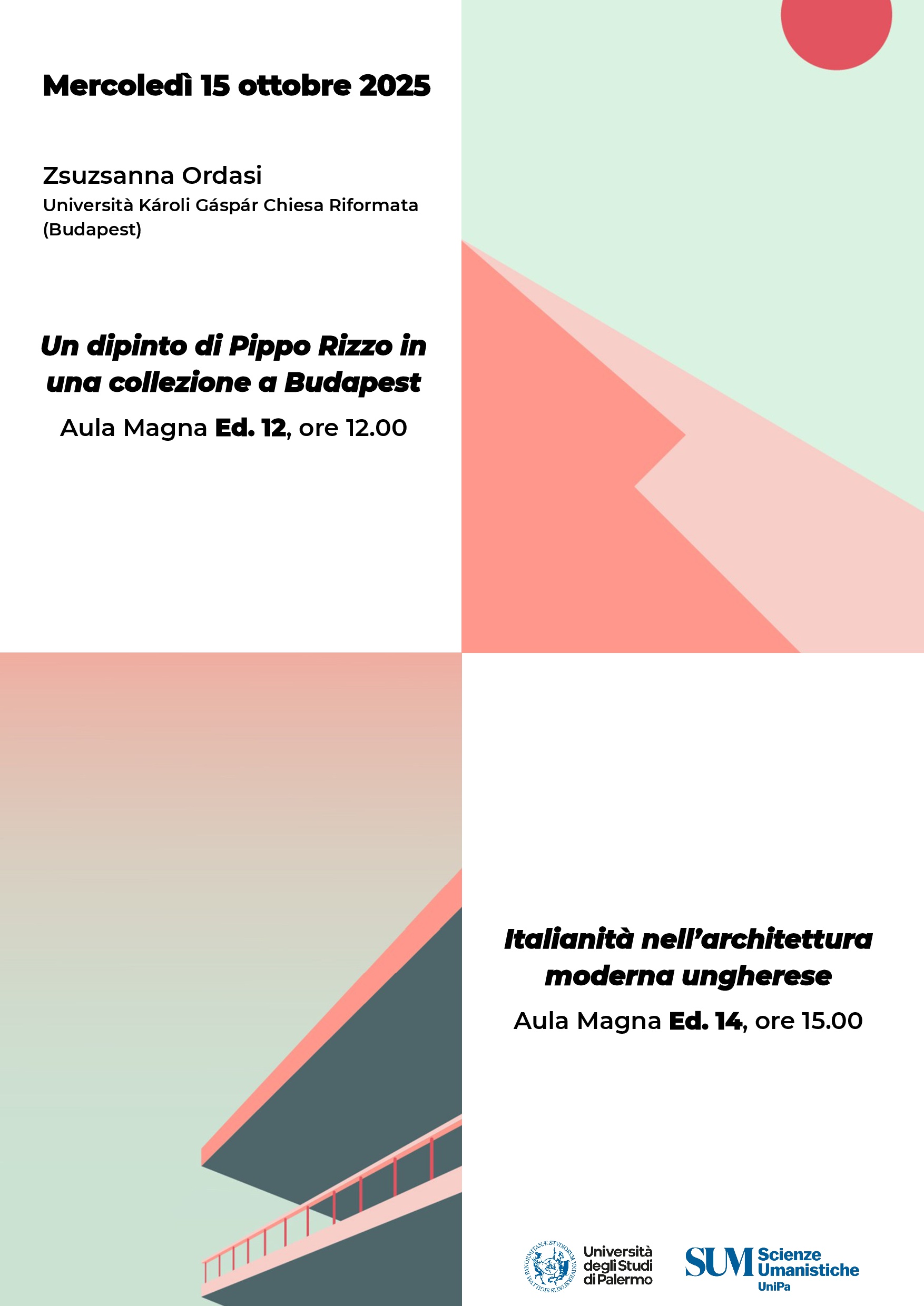 Mercoledì 15 ottobre 2025, la professoressa Zsuzsanna Ordasi dell’Università Károli Gáspár della Chiesa Riformata di Budapest sarà ospite dell’Ateneo di Palermo per due lezioni dedicate ai rapporti artistici e culturali tra Italia e Ungheria.