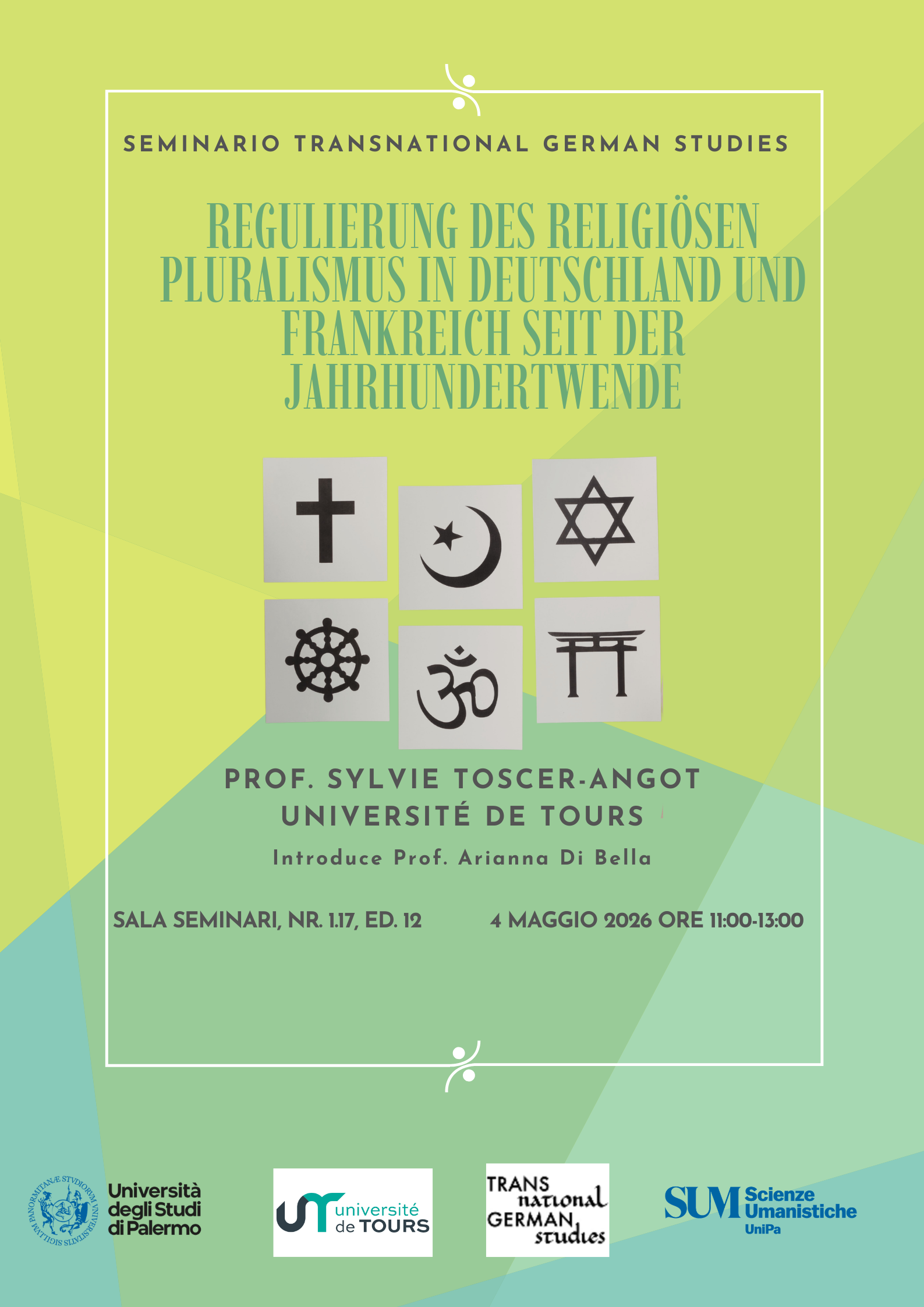 Steri, Sala delle Capriate, 5-6 maggio 2016,Sala Magna, 7 maggio 2016 Palermo, Piazza Marina, 61Gli sconvolgenti eccidi di Parigi e di Bruxelles, che fanno seguito a una ininterrotta teoria di massacri in tutto il mondo, e particolarmente nel continente africano, impongono una riflessione non di maniera sulle cause di quanto accade, tanto più doverosa per un Ateneo quale quello di Palermo che aspira a essere, sul piano culturale e scientifico, punto d’incontro e cerniera tra le terre bagnate dal Mediterraneo. In questo quadro drammatico i saperi umanistici, da tante parti giudicati residuali a fronte delle abilità tecnico-scientifiche, sono chiamati a svolgere un ruolo di comprensione e orientamento che può essere fondamentale: perciò il Dipartimento di Scienze Umanistiche dell’Università di Palermo ha deciso di organizzare un Convegno dal titolo “Le parole della pace, le parole della guerra”. che costituisca un momento di dibattito, scientifico ma non accademico, su quanto di terribile avviene e sulle ragioni che sono all'origine di questi eventi. Il Convegno, per il quale sono state decise le date del 5, 6, e 7 Maggio, sarà così articolato: