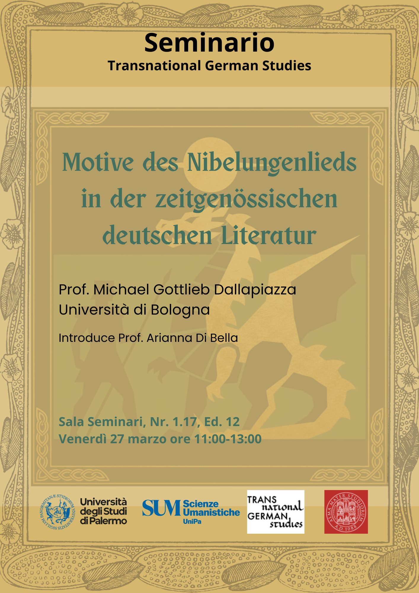 Ideologie identitarie, nazionalismi, conflitti: Europa 1870-1922Il cinquantennio che va dalla guerra Franco-Prussiana alla conclusione della Grande Guerra e all’avvento del Fascismo in Italia (prima e antesignana svolta totalitaria nell’Europa postbellica) contrassegna una fase nuova nel costituirsi dell’ideologia della nazione e del carattere dei popoli. I processi culturali che, tra il XVIII e il XIX secolo, avevano fatto da repertorio ideologico costitutivo per la fondazione politica delle nazioni europee moderne, assecondano, dalla seconda metà dell’Ottocento, la rapida involuzione nazionalistica delle politiche nazionali, funzionali all’espansionismo coloniale e alle mire egemoniche continentali, ma anche a fronteggiare e reprimere i conflitti sociali interni. Un trapasso culturale e politico dal patriottismo romantico al nazionalismo imperialista (quella che Maurizio Viroli ha definito sinteticamente «nazionalizzazione del patriottismo»), per il quale quelle che erano state generalmente ritenute semplici differenze di indole, di costumi, di abitudini sociali tra le popolazioni delle nazioni si trasformano in contrapposizioni inconciliabili: lo stato nazionale è l’emanazione di un popolo omogeneo, di una razza, e l’irriducibile alterità dello straniero rispecchia e consolida questa credenza. Ricorrendo a strumenti forniti da discipline quali la socio-psicologia, l’antropologia sociale, il biologismo, il socialdarwinismo, con le approssimative semplificazioni di divulgatori quali Gobineau, Chamberlain, Nordau, Langbehn etc., si ritiene così di poter definire il carattere dei popoli e di marcare le identità nazionali in chiave totalizzante. Il convegno interdisciplinare promosso dal dipartimento di Scienze Umanistiche dell’Università di Palermo intende documentare, discutere e problematizzare la funzione della produzione artistica e culturale e dei dispositivi a essa connessi (processi di trasmissione e ricezione in sede critica e storiografia, politiche culturali degli stati nazionali) nella costruzione e nel consolidamento di ideologie e sentimenti nazionalistici e xenofobi e nella codificazione e nella diffusione sia dei modelli culturali identitari dominanti funzionali a questo scopo sia dei loro speculari contro-modelli (l’irriducibile alterità dello straniero rispetto al connazionale, anzitutto; ma anche quella del femminile, dell’omosessuale e in generale del “non-maschile” rispetto al maschile nei processi culturali di ‘virilizzazione’ della nazione).