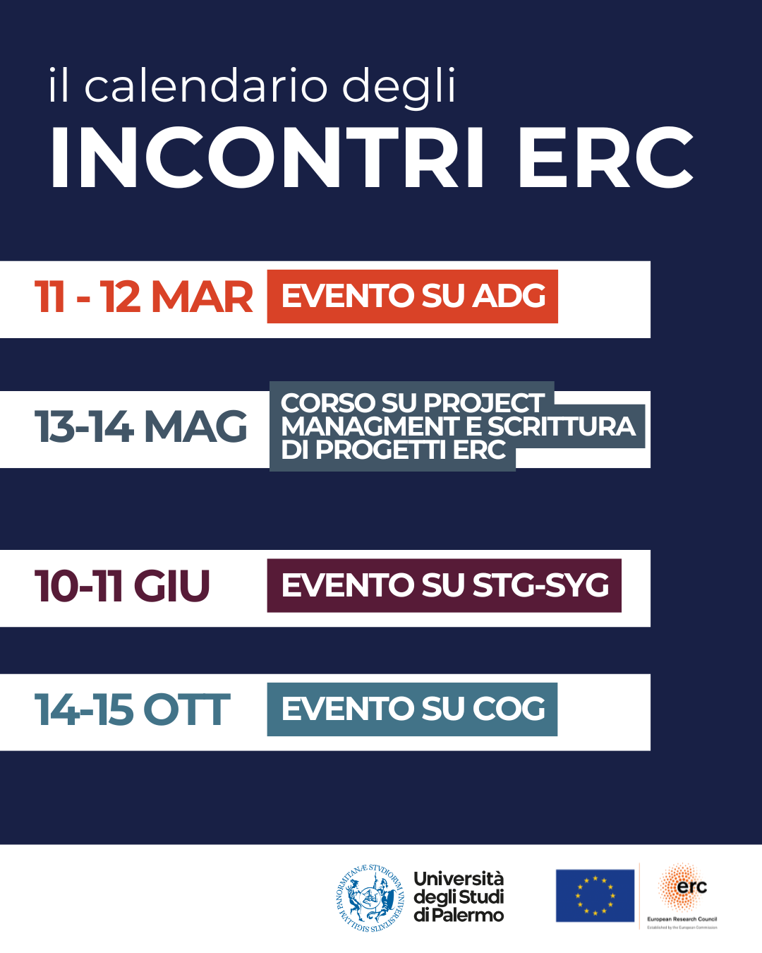 Tra le azioni promosse tra UNIPA e P&F Technology rientrano le attività di informazione e formazione del programma ERC devolute a professori, ricercatori e personale tecnico-amministrativo a mezzo eventi organizzati a tal fine