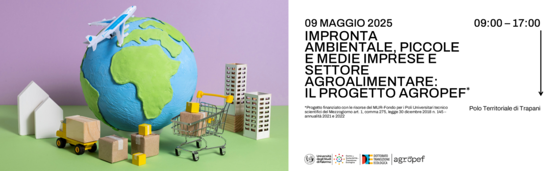 Venerdì 9 maggio 2025, dalle ore 08:30 alle 17:00, presso l’Aula 109 del Polo Territoriale Universitario di Trapani, si è svolto l’evento organizzato dal Centro di Sostenibilità e Transizione Ecologica (CSTE) dell’Università degli Studi di Palermo, dal titolo "Impronta Ambientale, Piccole e Medie Imprese e Settore Agroalimentare: il Progetto AGROPEF".