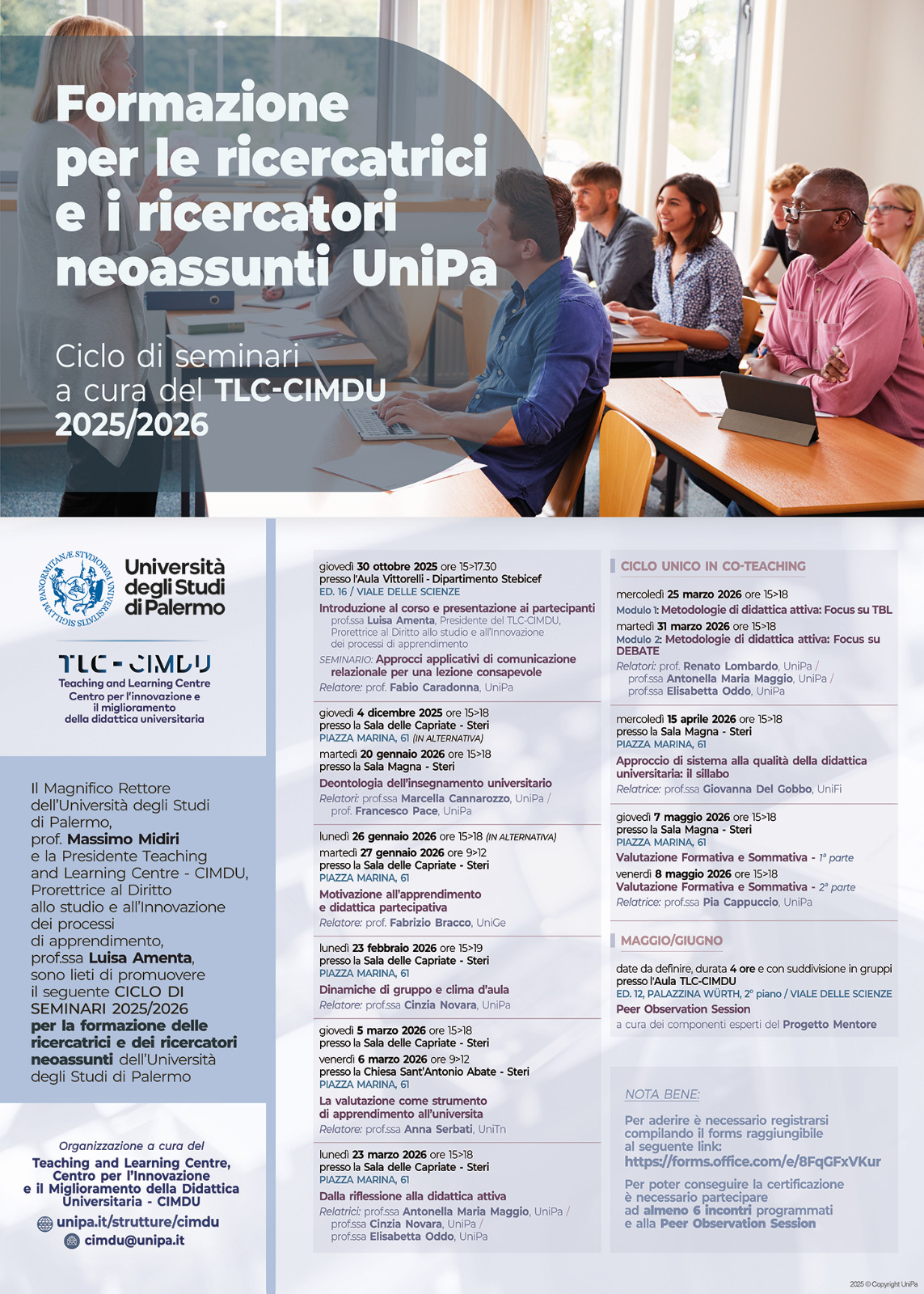 Ciclo di seminari - Formazione per le ricercatrici e i ricercatori neoassunti UniPa 2025/2026